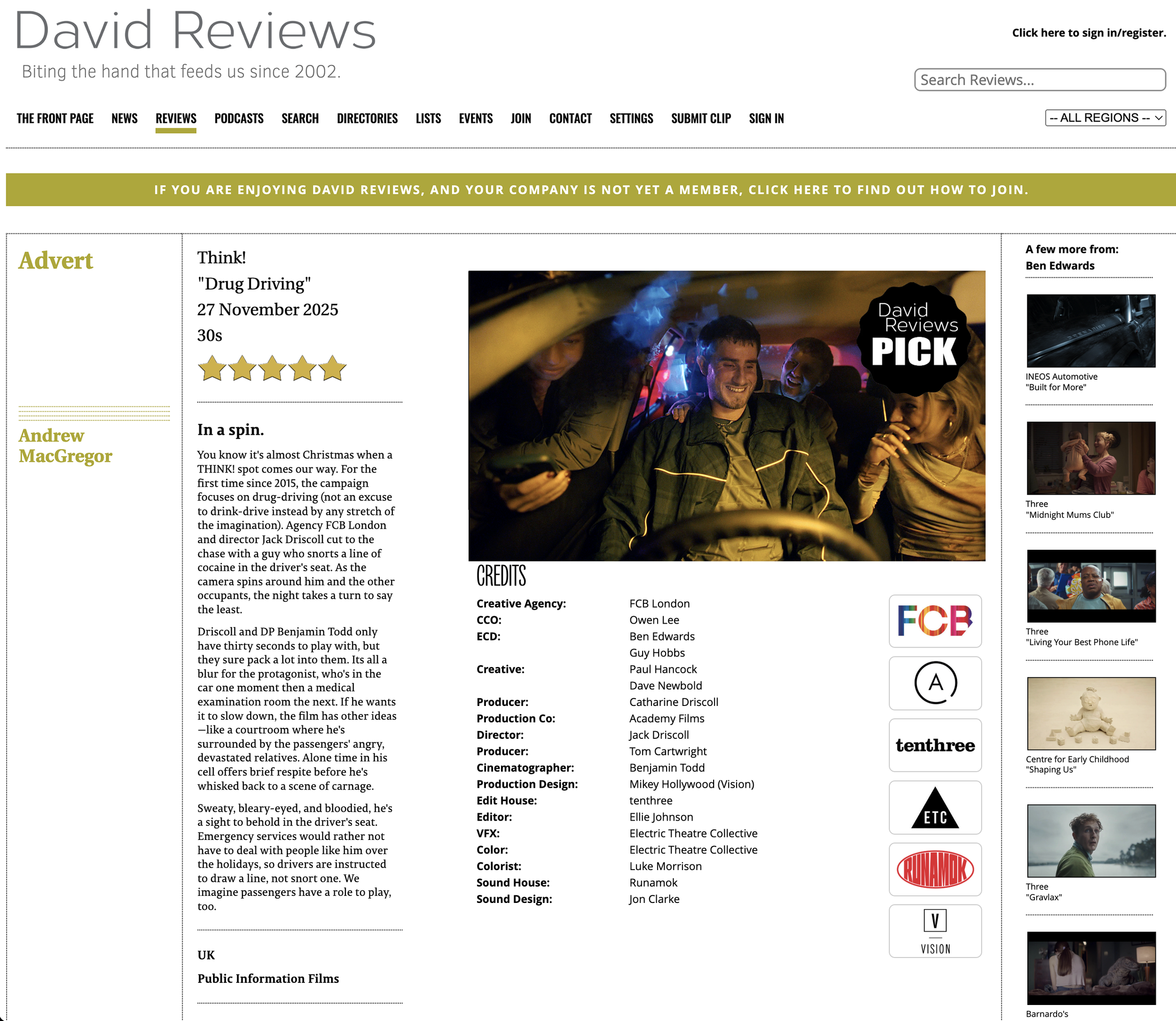 After winning the £10m DfT pitch to create all the government’s road safety campaigns under its THINK! platform, we created ‘Don’t Put Drugs in The Driving Seat’. This hard-hitting campaign put the consequences of driving high front and centre across film, OOH and radio.