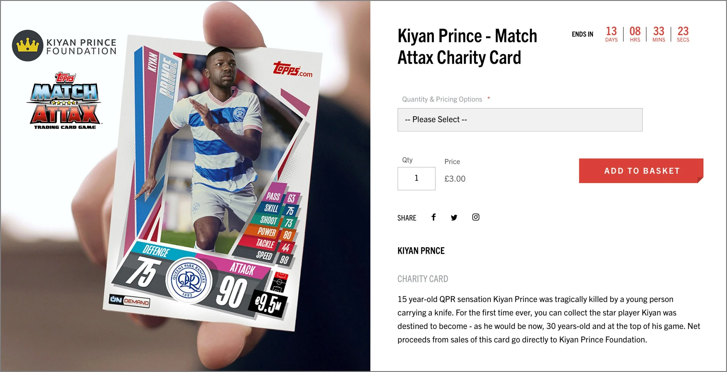 KPF’S FUNDRAISING MATCH ATTAX CARD CELEBRATES THE PLAYER KIYAN WOULD HAVE BEEN